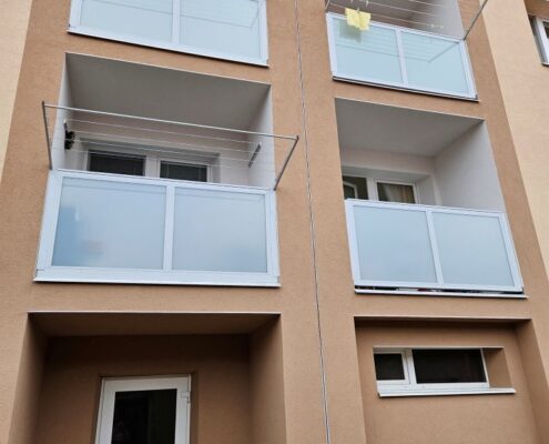 - dodávka a montáž nového hliníkového zábradlia s výplňou lepeného bezpečnostného skla CONEX